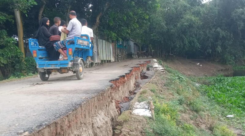উল্লাপাড়ায় সড়ক নির্মাণে ৪ মাস পার নাহতেই ধ্বসে যাচ্ছে ২ টি সড়ক