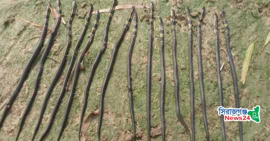 লুৎফর রহমান, তাড়াশ: সিরাজগঞ্জের তাড়াশে জালে আটকে পড়া ১৫ টি কালো কেউটে সাপ পিটিয়ে মেরে ফেলেছে গ্রামবাসী। ঘটনাটি ঘটেছে আজ